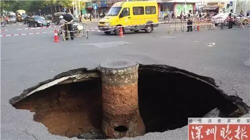 11月3日下午2点多,深圳市南山区西丽石鼓路与同沙路交汇处,发生了路面塌陷,地面塌陷成了一个大坑,一泥头车差点掉入大坑。