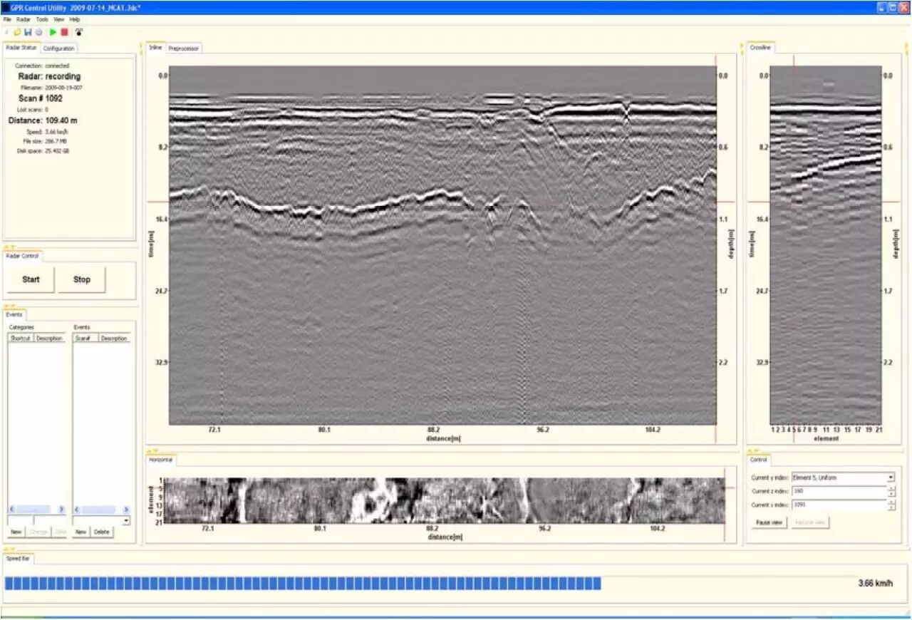 探地雷达是一种无损检测技术,可以安全地用于城市道路中。工作条件宽松,不需要关闭交通,适应性强,抗干扰能力强,具有较高的探测精度和分辨率。特别是基于天线阵技术的三维探地雷达技术,可通过对城市道路路基周期性快速检测及评估,及时把握路基病害分布和程度,预防路面塌陷等恶性事故发生,成为城市路面坍塌预防的一种解决方案。