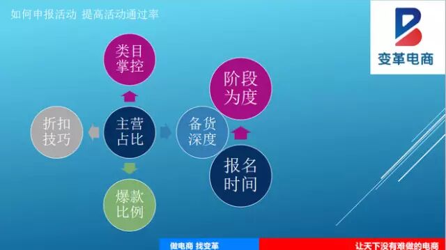 1.店铺主营占比超过80%,报名活动几率才会大,如果低于80%基本上报名活动都不给予通过的!